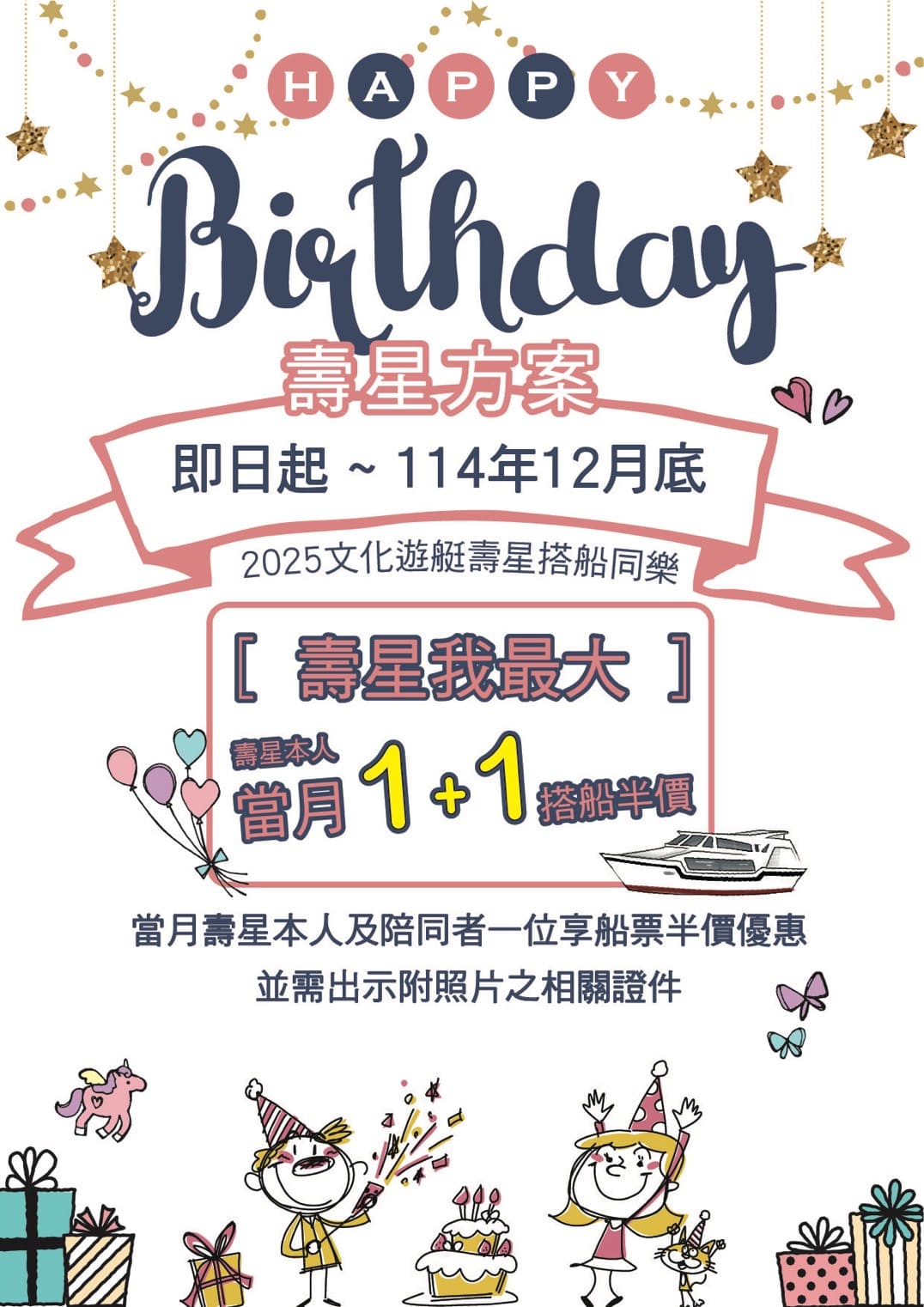 📣文化遊艇【當月壽星!搭船1+1優惠送給你 💕】